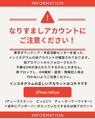 東京ボランティア・市民活動センターのインスタグラムグラムのなりすましアカウントが確認されています。