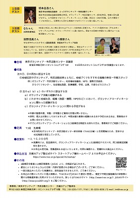 会 場: 東京ボランティア・市民活動センター 会議室(新宿区神楽坂1-1 セントラルプラザ 10F)