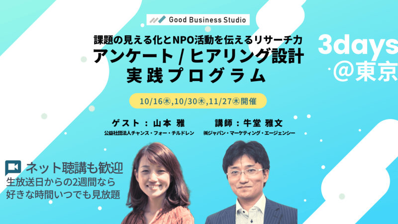 活動を横展開、セクターを越えたプロジェクトを実現したいNPOにとって、NPOの実践を再現するエビデンスを集める「アンケート調査」の手法は欠かせないスキルになりました。
