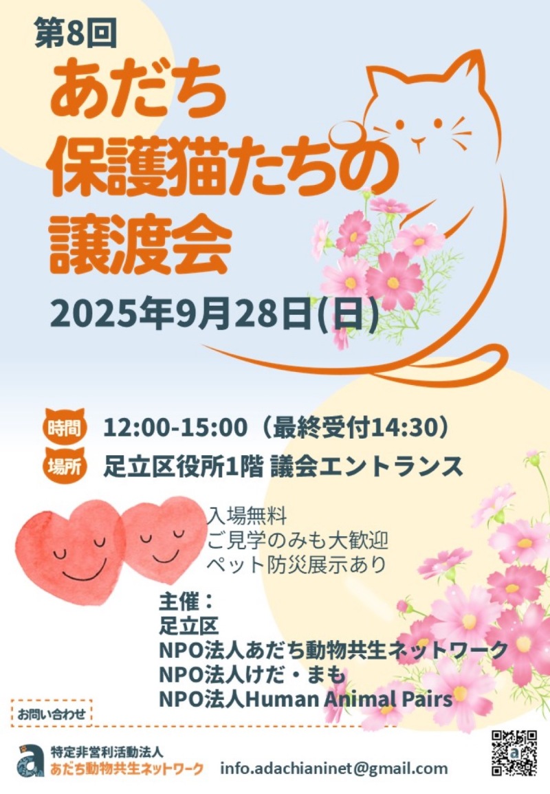 ◆イベント名:第8回 あだち保護猫たちの譲渡会