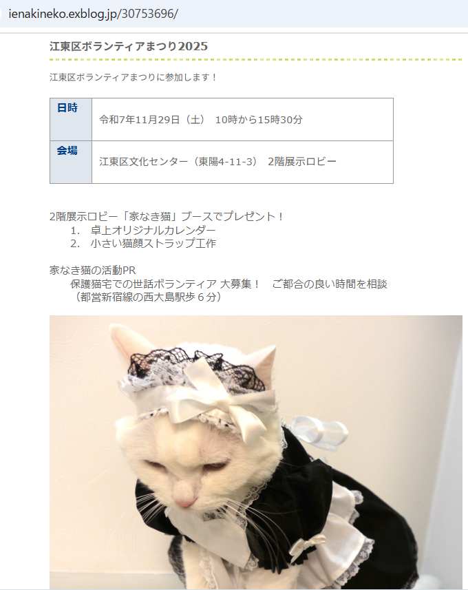 「江東区ボランティアまつりのお手伝い」で、yume_neko@ymail.ne.jp へメールをください。