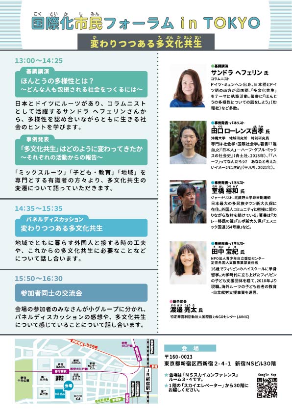 「子ども・教育」「地域」などの多彩なテーマに焦点を当てながら、東京にふさわしい多文化共生の姿について、皆さんと一緒に考えます。