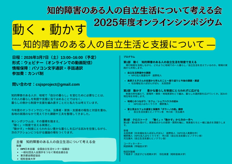 ◯知的障害のある人の自立生活について考える会 2025年度ONLINEシンポジウム