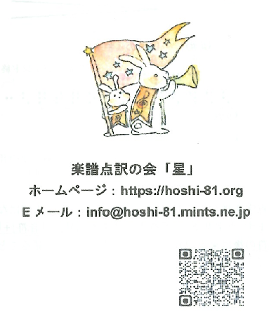 楽譜点訳の会「星」のホームページ <https;//hoshi-81.org> もご覧ください。