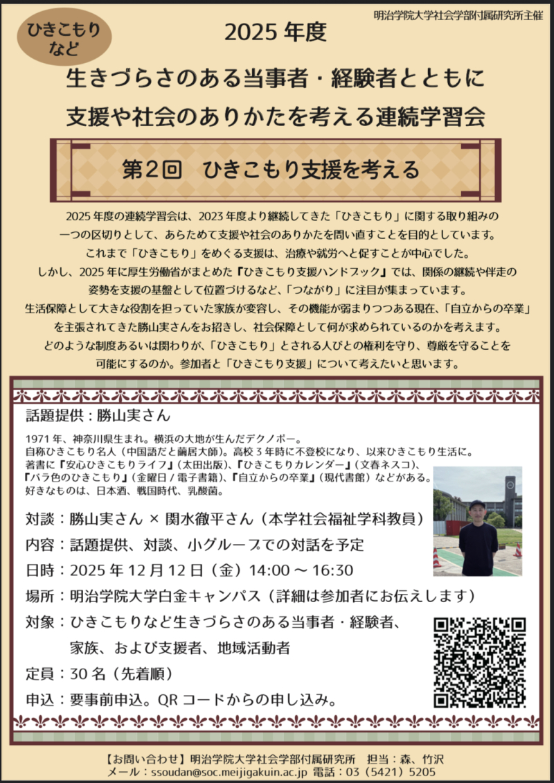 開催日: 2025年11月8日(土) 、 2025年11月15日(土) 、 2025年11月22日(土) 、 2025年11月30日(日)