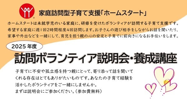 家庭訪問型子育て支援【ホームスタート】訪問ボランティア募集&養成講座のお知らせ