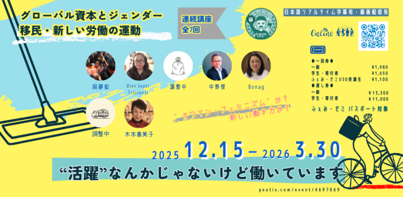 胡美蓮(WU mei-lin/ウー・メイリン)さん「香港における周縁女性/労働者たちの運動」/グローバル資本とジェンダー・移民・新しい労働の運動~“活躍”なんかじゃないけど働いています