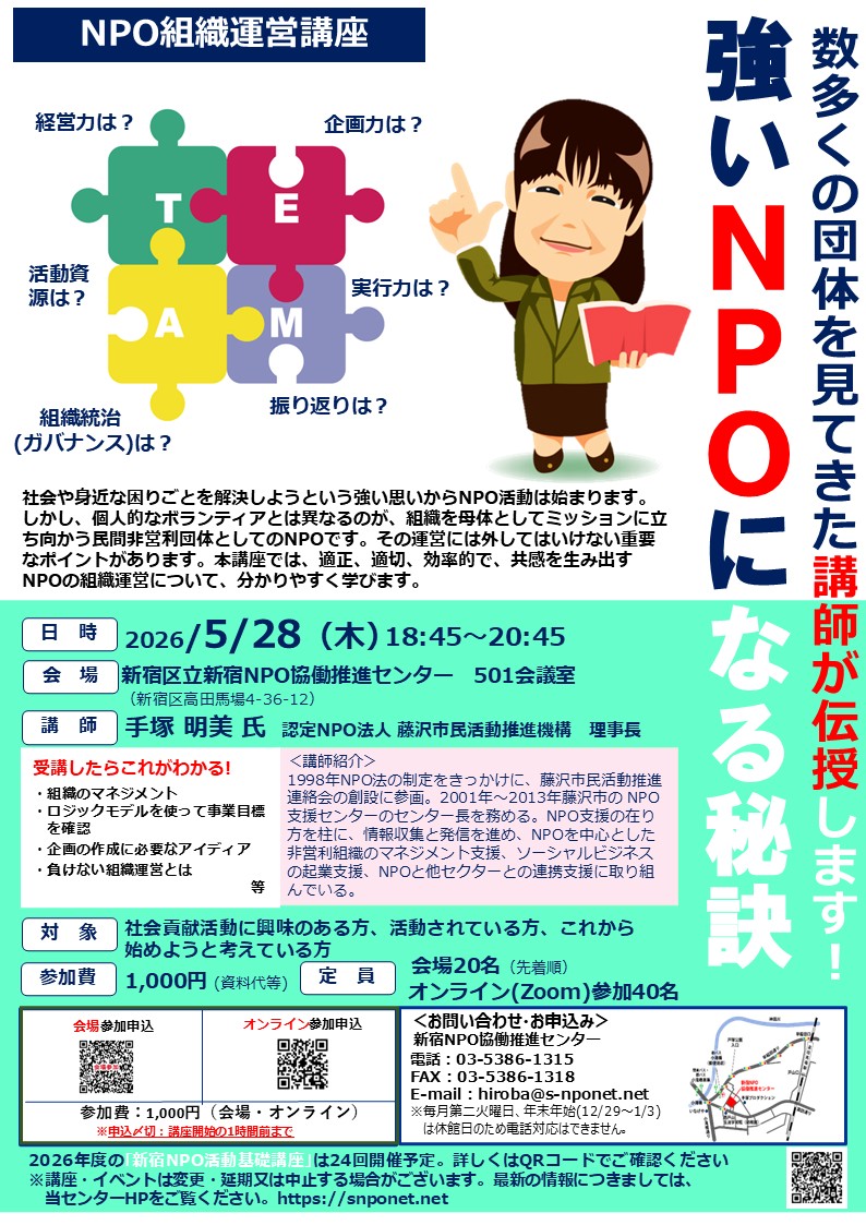 【講座】『NPO入門講座』さあ、NPO活動を始めましょう‼ ~身近な問題や社会問題を解決していくNPOについて学ぼう!~