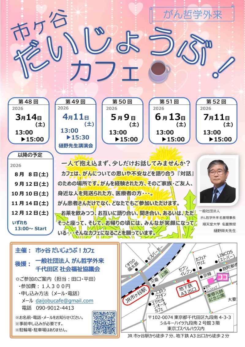 第48回 がん哲学外来 市ヶ谷だいじょうぶ!カフェ「羽根を休めにいらっしゃいませんか?」