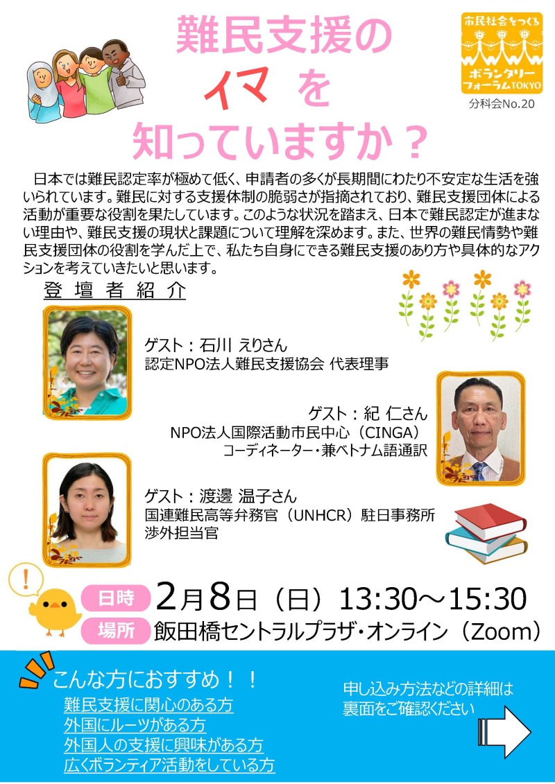市民社会をつくるボランタリーフォーラムTOKYO2026 分科会紹介16 No.20 難民支援のイマを知ってますか?